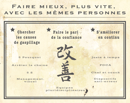 – Kasperski se décide à sortir de son mutisme : oui, nous sommes un peu les M. Jourdain de l’amélioration continue, nous en faisions sans le savoir … Ces deux principes, ajoutés à la recherche des causes de gaspillage, sont les piliers du lean management, une discipline industrielle que l’on suit chez Toyota depuis les années 50 …