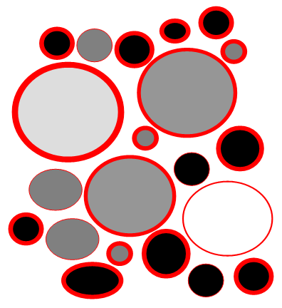 We will then display this debt in €, as a fraction of the annual total cost, with a crust surrounding the asset. A crust visibly empeds an asset from developing, it is easily understandable by executives : bahhh big crust! ahhhh small crust! The thick crust on the right represents the equivalent of one year of costs of the asset (we should focus our entire energy for one year to clear it), a thin one, one tenth of the total cost (less than a month of the whole team to clean).